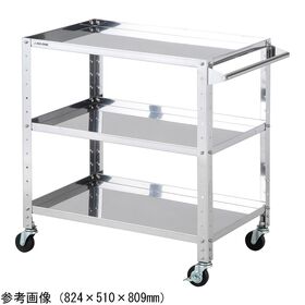 ●導電キャスター標準装備(対角ストッパー付き)のステンレスワゴンです。
