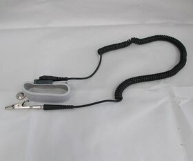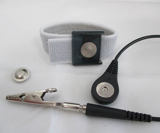 ●全てのバンドに4mm留め具がついています。リストストラップセット一式にはワニ口クリップが付属しています。付属のワニ口クリップは、接地されたバナナジャックが使用できない場合に使います。とはいえ、最善の工業用慣習では、ESD接地接続は金属製のクリンプや留め具、バナナプラグなどのしっかりフィットする接続器具を指定の接地点に接続すること、としています。ワニ口クリップのご使用はお奨め致しません。