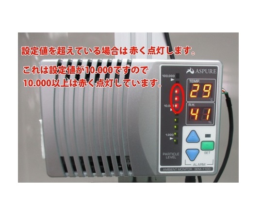 ●クリーン度表示レベル:クラス100相当~クラス100,000相当を10段階でレベル表示100-1,000-2,000-3,000-5,000-10,000-20,000-30,000-50,000-100,000