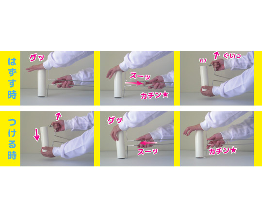 ●ネックに角度がついているので、壁に掛けた際、テープが壁に接しないので衛生的です。