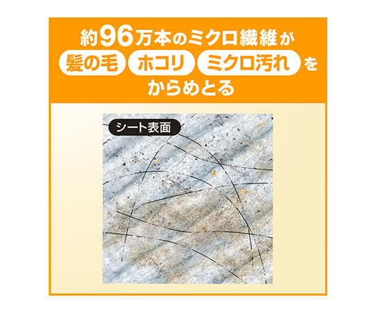●約96万本のミクロの繊維が細かなホコリ・髪の毛まで、しっかりからめとって離しません。