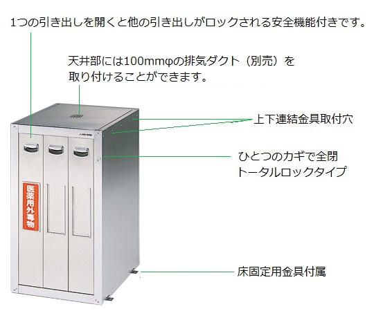 ●※複数台数を横連結・壁面/床固定される場合には(3-5016-11~13)のセフティキャビネット用オプションL4・L2・F4をご購入ください。