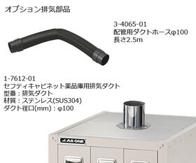 ●天井部にはφ100mmの排気ダクト(1-7612-01)を取り付けることができます。