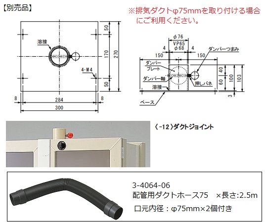 ●薬品のベーパーや薬液臭を別売のファンユニット・ダクトジョイントを本体へ装着する事によって庫外へ排気することができます。