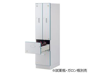 ●上段に500mL試薬瓶・中段に1000mL試薬瓶・下段にガロン瓶を収納できます。