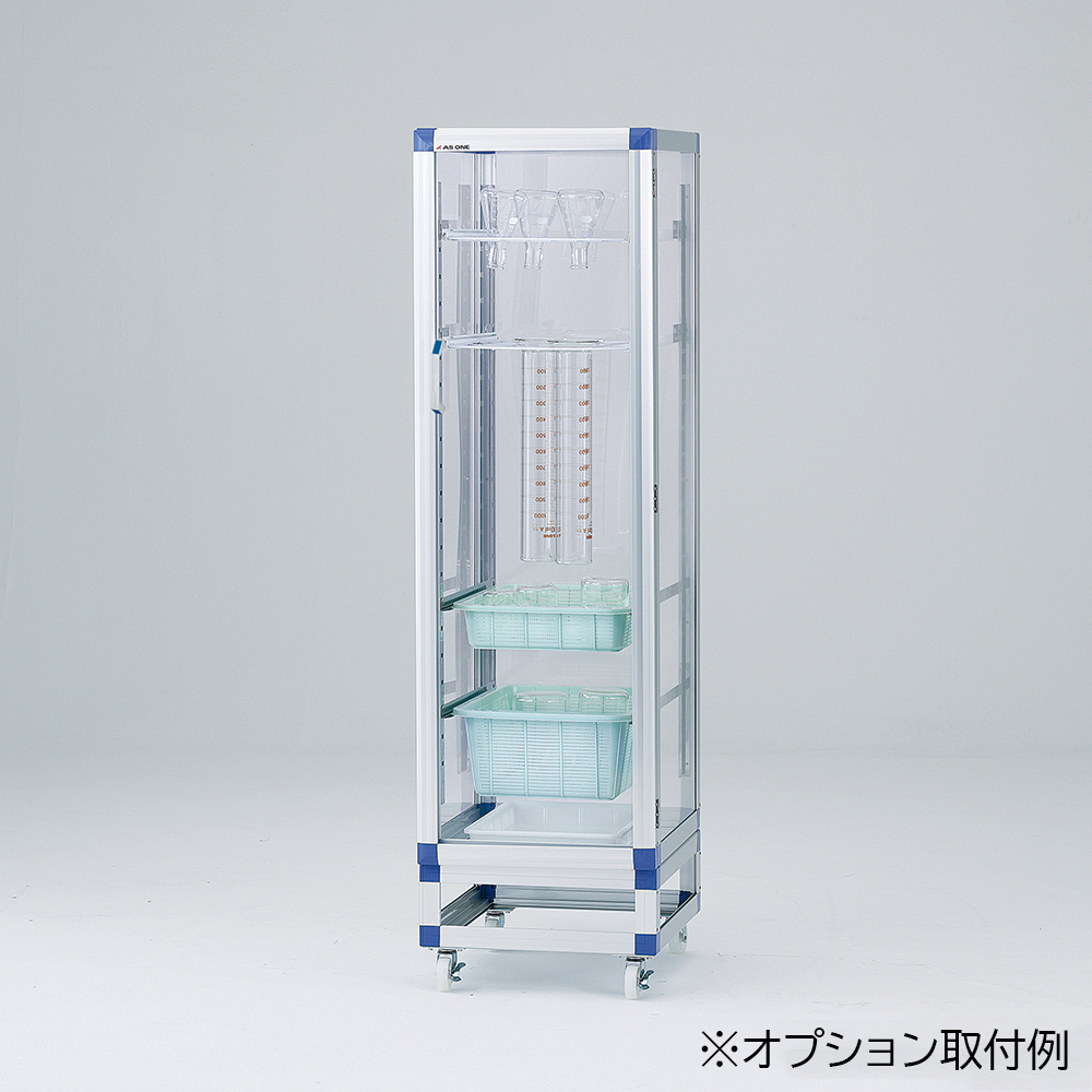 ●メッシュ棚(別売)はスライドレール式で、スムーズに引き出すことができシリンダーやフラスコの出し入れに便利です。