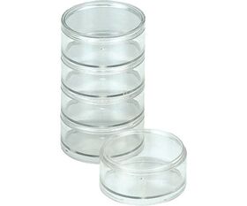 ●本体やフタがねじ式の連結タイプで小物の分類に便利な丸型タイプです。