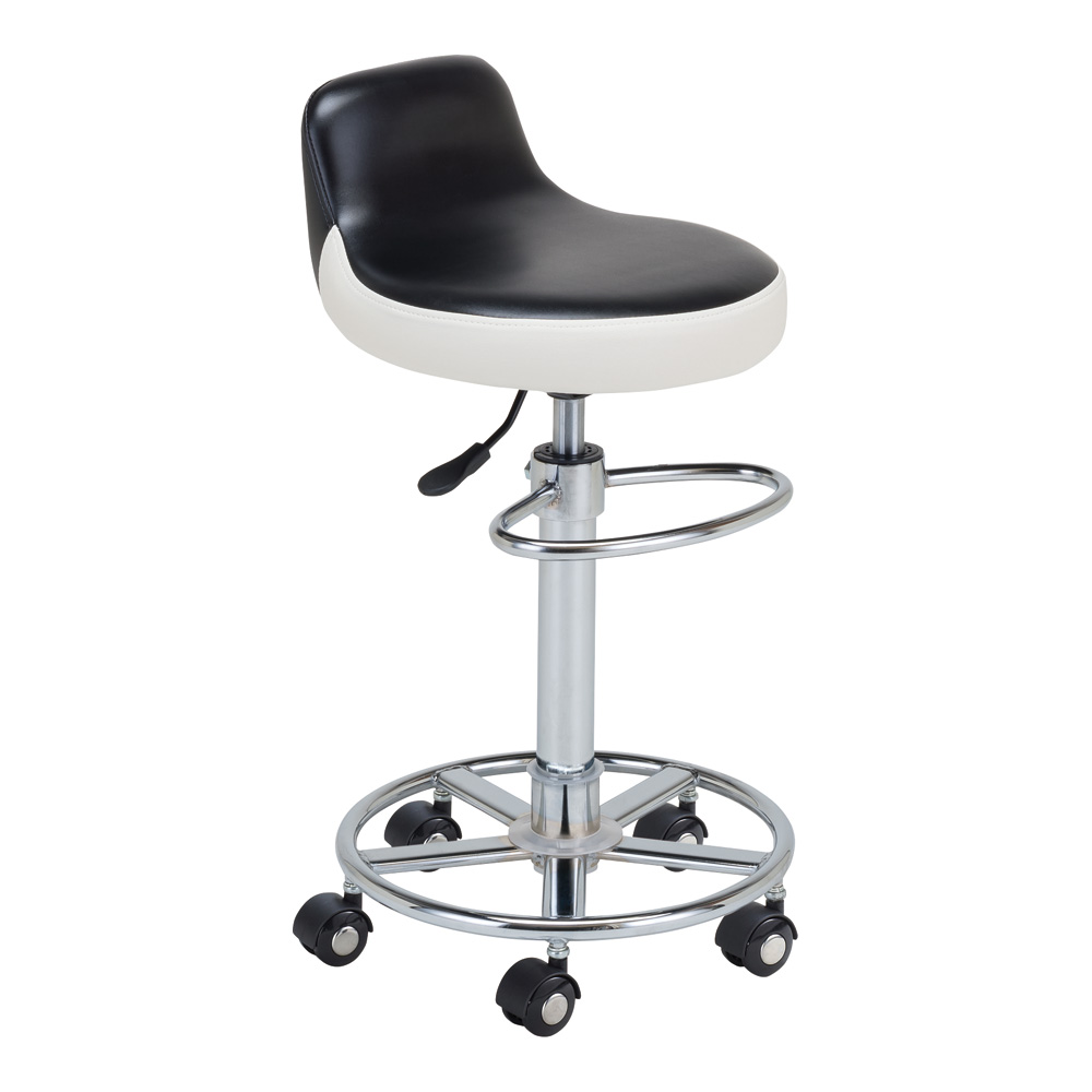 ●材質:脚部本体/スチール(クロームメッキ)、座部/PVCレザー(内材/ウレタンフォーム+低反発ウレタン)、キャスター/ウレタンキャスター