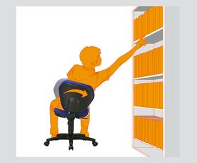 ●上体の動きに合わせて前後だけでなく左右にも可動するので、座ったままでも活動範囲が広がります。