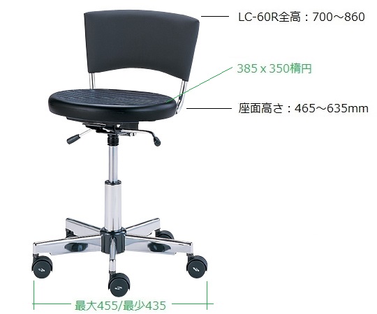 ●材質:座部シートパット/ウレタン発泡成型(導電仕様)、背部張り地/ビニールレザー張(導電仕様)