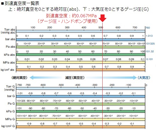 ●到達真空度:約0.067MPa(ゲージ圧・ハンドポンプ使用)