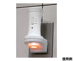 ●通常時は明暗センサーによる常夜灯、停電時には非常灯、ホルダーから持ち上げるとハンディライトになる充電式ライトです。