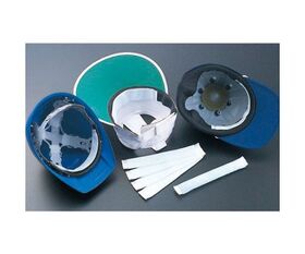 ●ヘルメットや布帽子の内側に貼るだけで、素早く汗を吸い取ります。