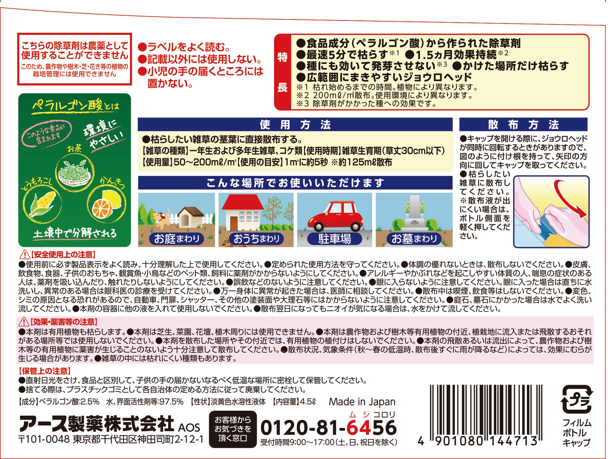 ●成分:ペラルゴン酸/2.5% 水、界面活性剤等:97.5%