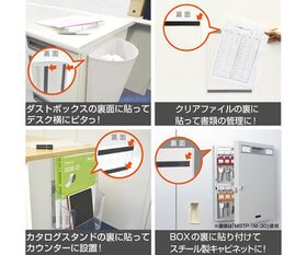●掲示板や小物、箱の裏に貼って、スチール面に付けられます。