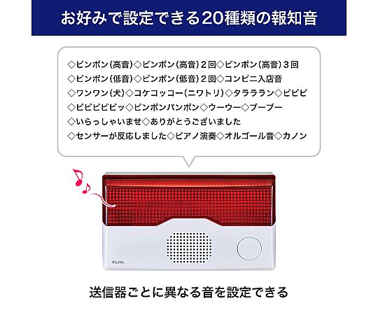 ●お好みで設定できる20種類の報知音。 送信器ごとに異なる音を設定できるので、音による送信器の判別が可能です。