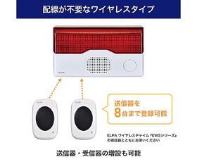 ●配線が不要なワイヤレスタイプなので設置が簡単! 用途に合わせて送信器・受信器の増設も可能です。(1台の受信器に送信器を8台まで登録可能)