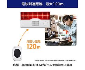 ●電波の到達距離は見通し約120m。 一般家庭や店舗・事務所における呼び出しや報知用に適しています。