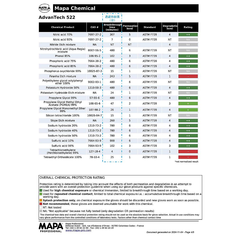 ●MAPA独自の3種混合材料で、耐薬品性に優れています。