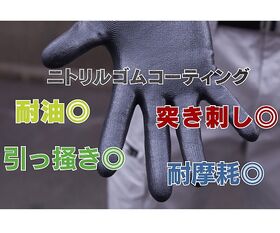 ●ニトリルゴムをコーティングしているため、油や突き刺し、引っ掻きに強く、耐摩耗性に優れています。