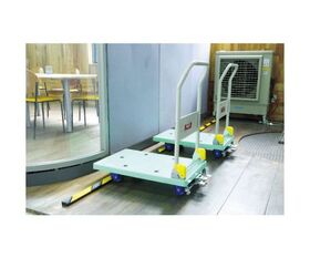 ●どこにでも簡単に設置できる台車用ストッパー(車輪止め)です。
