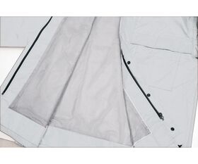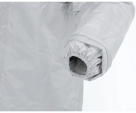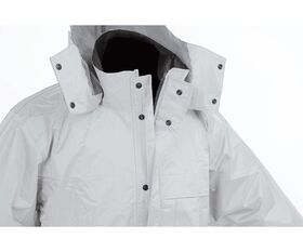 ●深めに設定した二重袖、ダブルフラップ、幅広の見返し(吸上げ防止生地)を装備し、防水性、作業性の高い商品です。