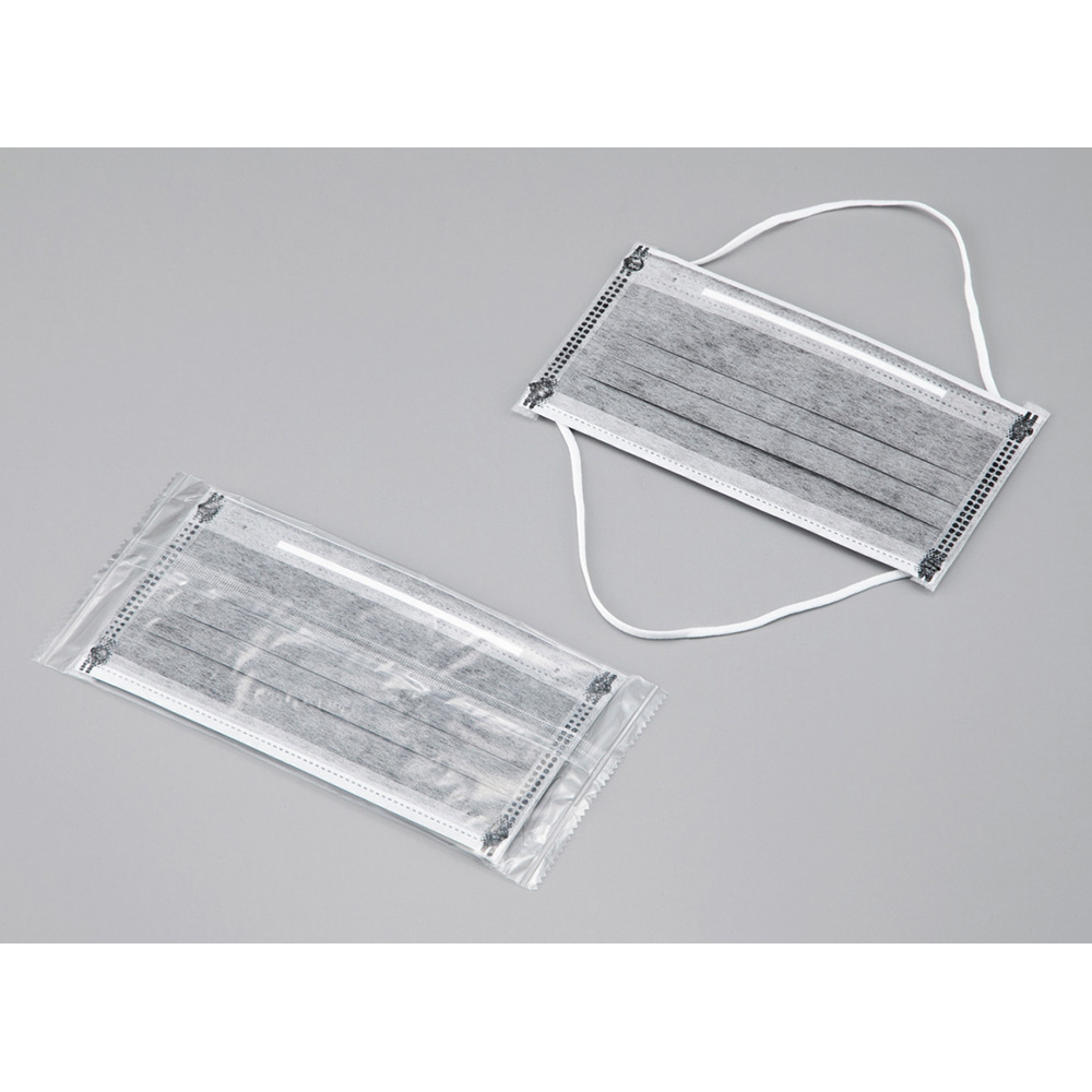 ●材質:マスク部/4層構造(ES繊維/活性炭フィルター/メルトブローPP/ES繊維)、ノーズクリップ/PP、バンド部/ポリエステルスパンデックス