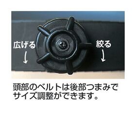 ●頭部ベルトは後部のつまみでサイズ調整が可能です。