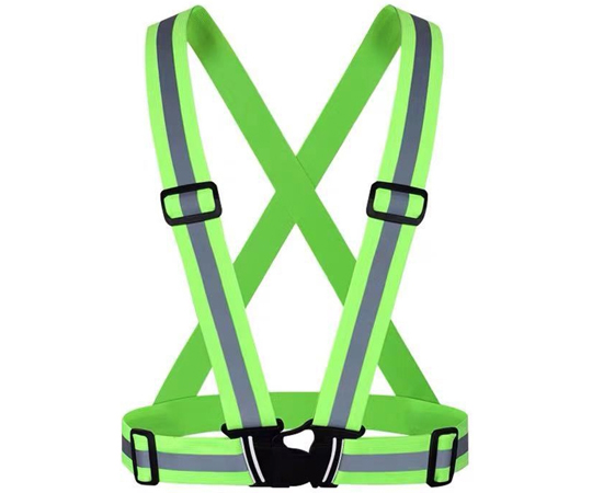 ●長さ、幅が調整可能なベルト式高輝度反射ベストです。光の反射により夜間に着用者を認知しやすい反射素材を使用しています。