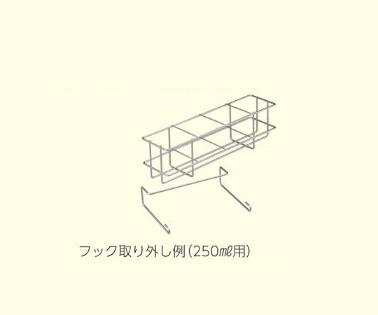 ●煩雑になりがちな卓上の洗浄瓶を4本まで収納し、棚などに引っかけて保管できます。