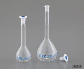 ●等級クラスAの硼珪酸ガラス製メスフラスコで、樹脂製の共栓が付属します。