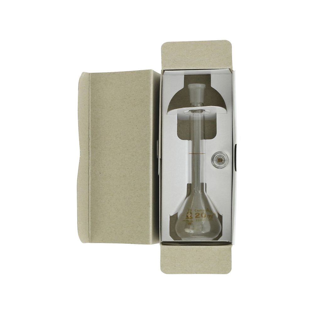 ●目盛のある首部分の径が細いため、同容量のメスシリンダーより目盛の精度が高いです。