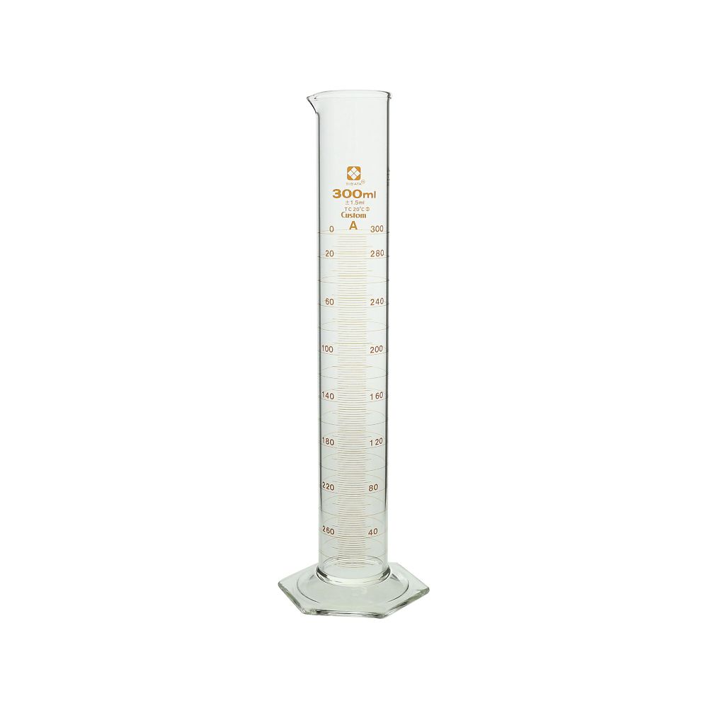 ●目盛は受入体積(入っている体積)を表し、受用(入用)を意味するTCを表示しています。(TC:To Contain の略)目盛は20℃の水を測定したときの体積を表します。