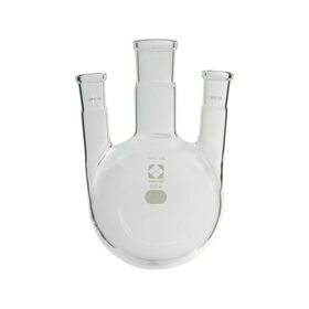 ●3ヶ所に接続口がある球状をしたガラス製のフラスコです。