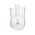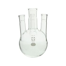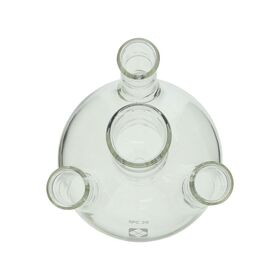 ●4ヶ所に接続口がある球状をしたガラス製のフラスコです。