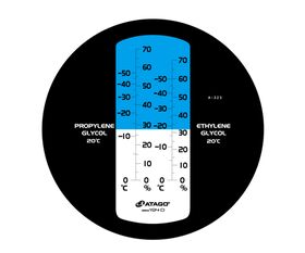●グリコール系熱媒体(エチレングリコールやプロピレングリコール)の濃度と凍結温度をチェックする事ができます。