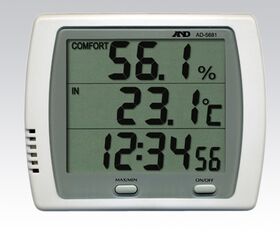 ●▼時計機能付き温湿度計