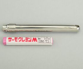 ●使用方法:加熱された物体に線を描き、それが溶けるか溶けないかで、指示温度以上であるか、以下であるかを判定します。
