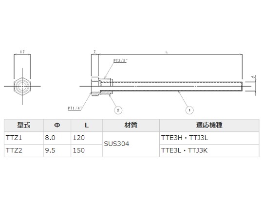 液膨張式サーモスタット TTE3H用保護管 TTZ1