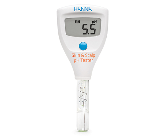 ●皮膚や頭皮の測定に適したフラット状のpH電極を採用し垂直に押し当てて測定。