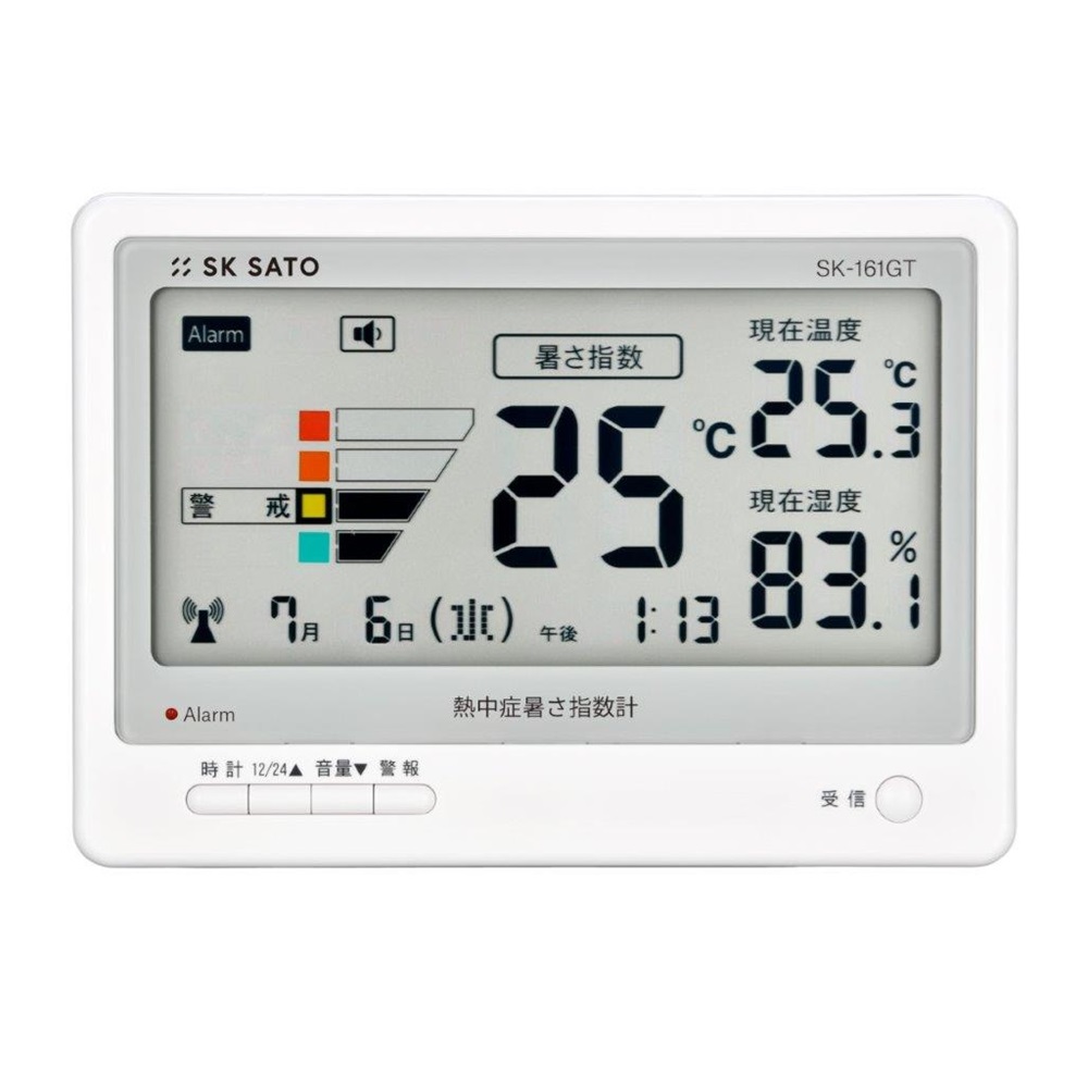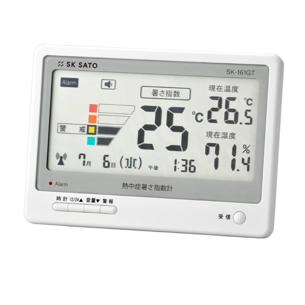 ●表示項目:WBGT指数・温度・湿度・時計(電波・12/24時間表示)