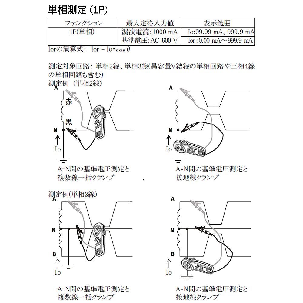 ●Ior(1P単相):99.99m/999.9mA