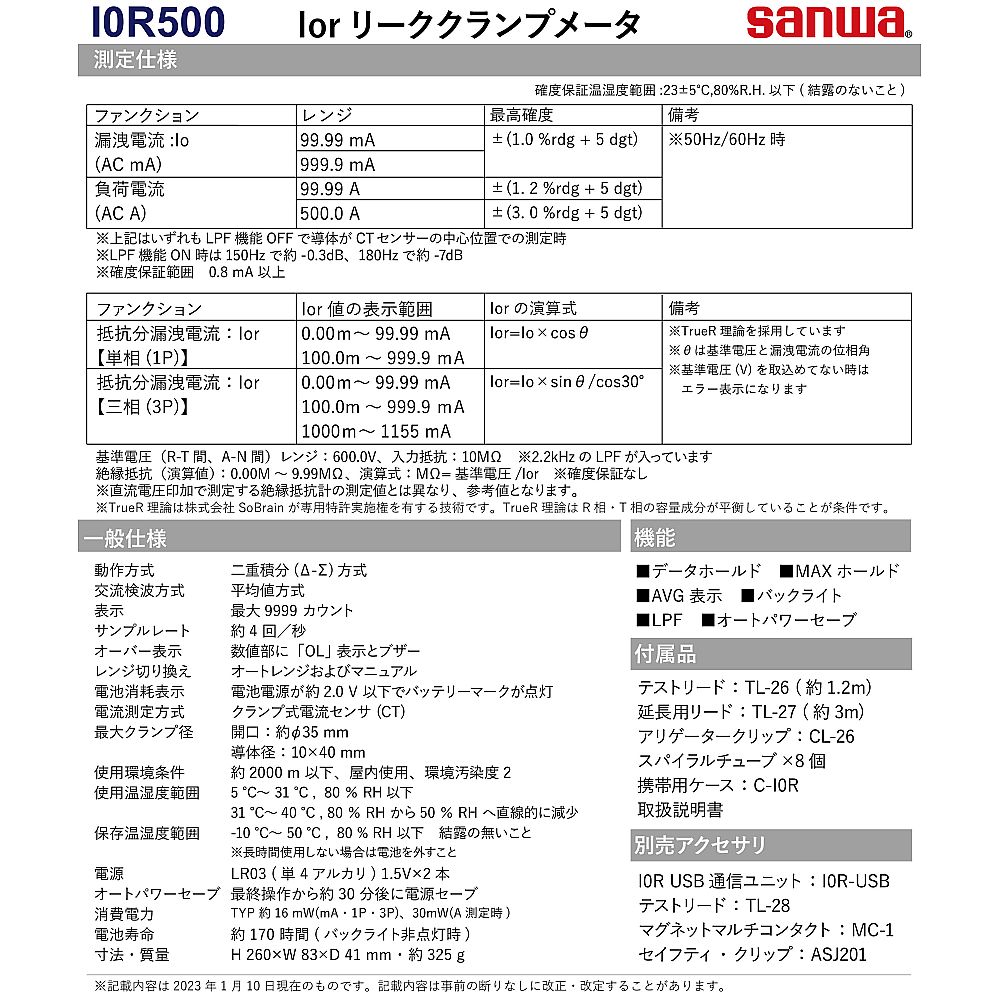 ●付属品:テストリード、延長用リードセット、ワニ口クリップ、スパイラルチューブ、携帯ケース