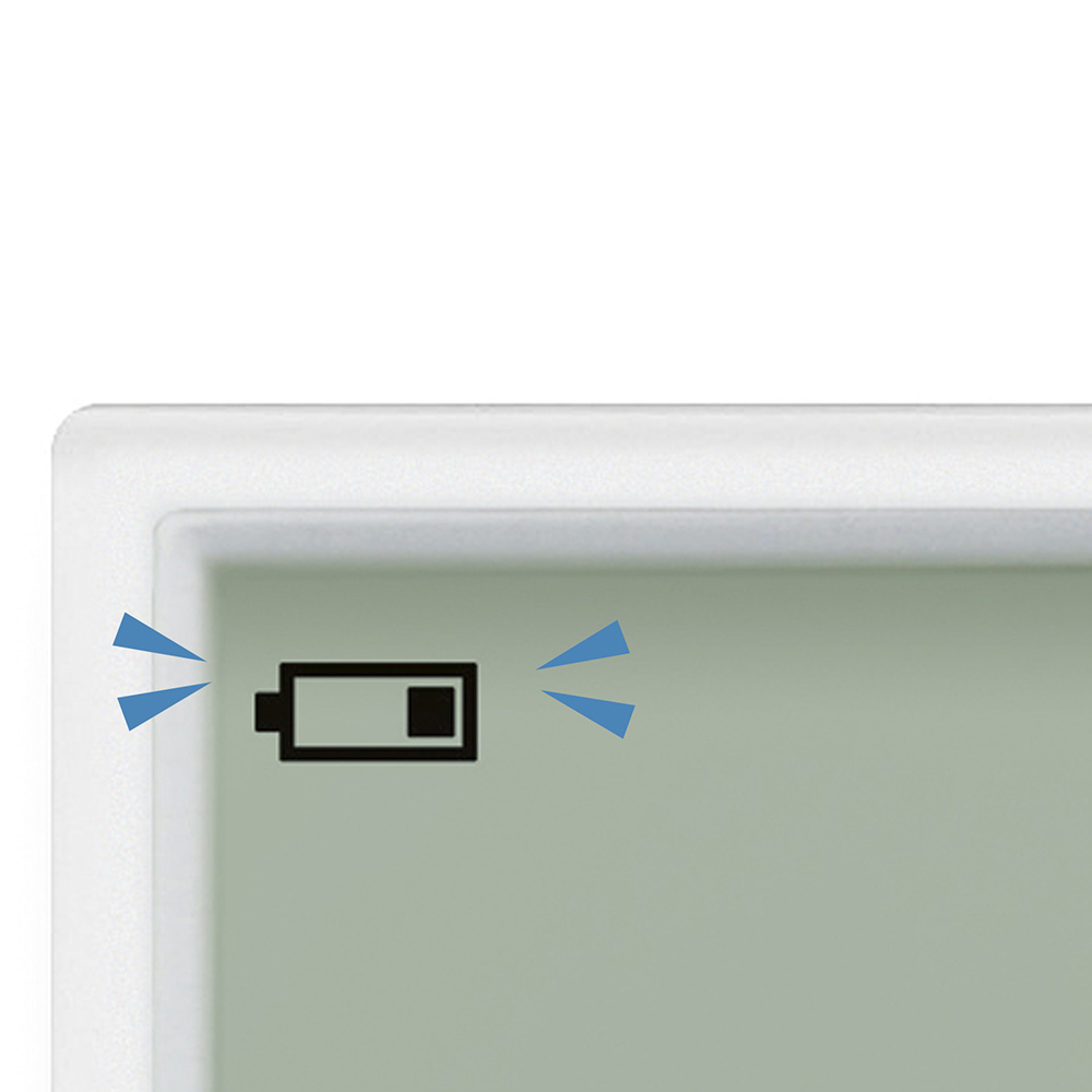 ●電池残量が少なくなると「電池交換お知らせマーク」が現れ点滅、突然の電池切れを防ぎます。
