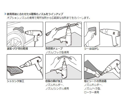 ●オプションノズルの使用で局所加熱から広範囲な加熱までカバーします。