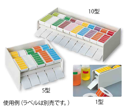 ●カラーラベル及びナンバー連続ラベル専用のディスペンサーで、ラベルの台紙を引き出すとラベルと台紙が分離してラベルだけを取ることができます。