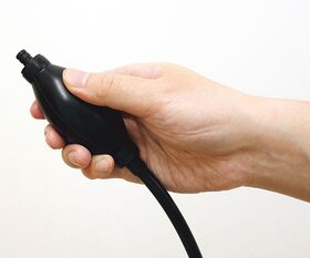 ●ゴム球を握って潰せばチューブ側から空気を吸引し、尻弁に排出される簡易的な手動ポンプです。