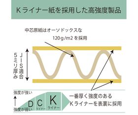 ●表・裏には強度があるKライナーを採用。強度が高くしなやか高品質の日本製ダンボール。