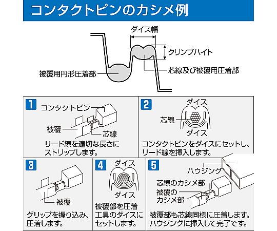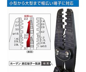 ●15種類の大小様々なダイスにより、小型から大型まで幅広い端子に対応。