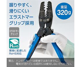 ●トグル機構採用により、軽い力でより確実に圧着できます。(ダイス部は段付で薄く仕上げています。)